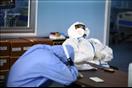 التعامل مع الملابس الواقية مهمة غاية في الحساسية، يتم الأمر من خلال غرفتين رئيسيتين، واحدة لارتداء الملابس وأخرى لخلعها. تضيف آمال: إذا احتجنا لأي فرد من الصيانة أو الخدمات الأخرى فإن هذا الشخص يتم تعقيمها بالطريقة المتعارف عليها.