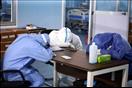 بين 14 و15 ساعة تستغرق أقل فترة عمل يومية للطاقم الطبي في المستشفى الميداني، البعض يسرق قسطًا من الراحة بعد ساعات عمل تصل إلى 36 ساعة، تراه متكئًا إلى حائط أو منكفئًا على منضدة، لحظات تغمض فيها العين حتى تواصل من جديد.