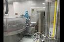 انتقلنا بعد ذلك إلى مرحلة غسيل وتنظيف العبوات الزجاجية التي يتم تعبئتها بالفاكسين، حيث توجد غرفة مغلقة بداخلها أحد الأفراد يرتدي بدلة معقمة ويقوم بوضع عبوات الفاكسين فارغة على جهاز يتسع لـ8 آلاف عبوة في الساعة، وبعدها يقوم بتشغيل الجهاز لغسيل العبوات.