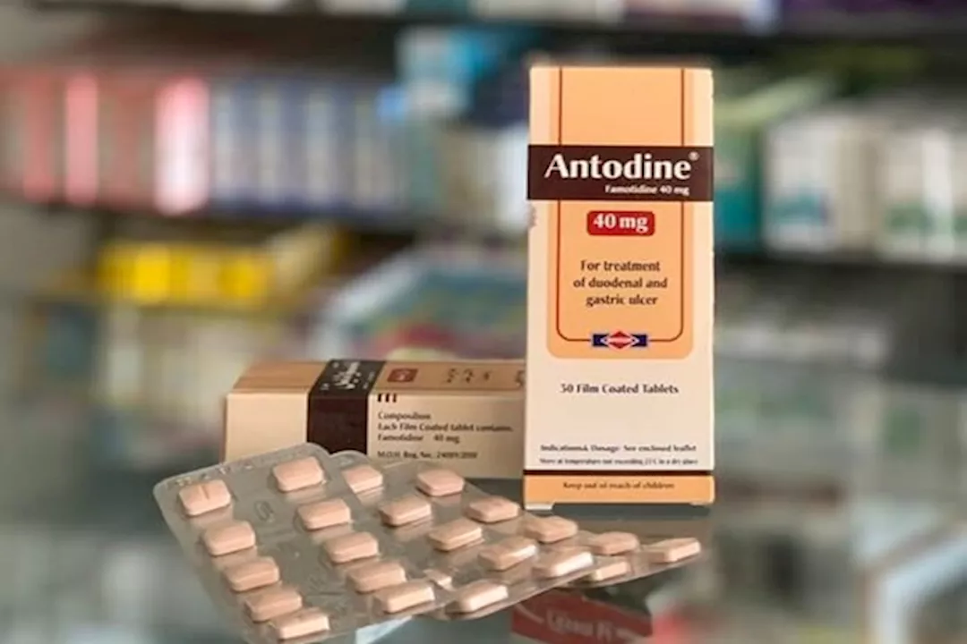 بينما دواء أنتودين Antodine يحتوي على فاموتيدين، وهي مادة تنتمي لمحصرات مستقبلات الهيستامين 2، تساعد على تقليل إفراز حمض المعدة عن طريق منع مستقبلات الهيستامين.